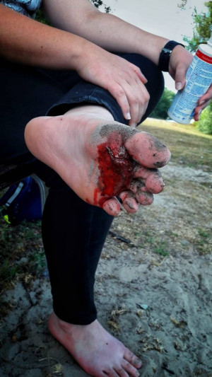 Gleich nachdem alles sauber war, gab es die dritte Alarmierung für uns: Schnittverletzung in der Küche. Unser Koch hatte sich „in die Hand geschnitten“, was wir prompt adäquat verbunden haben – denn nochmal putzen wollten wir nicht.